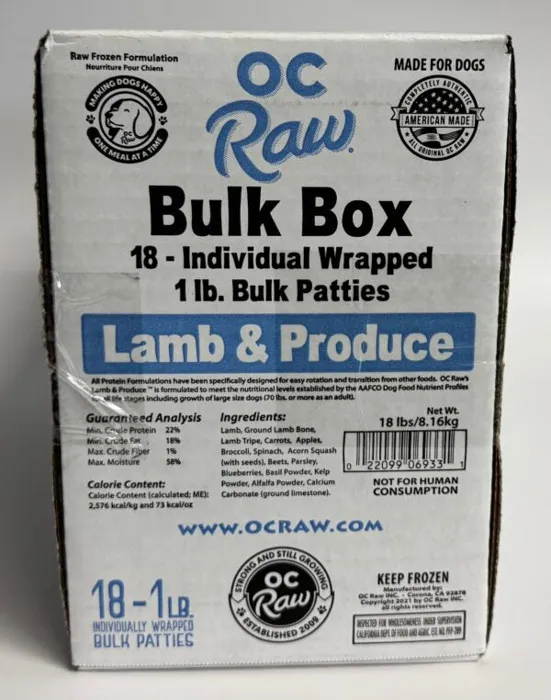 Oc Raw Dog Frozen Lamb & Produce 18-lbs