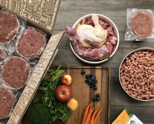 Chicken Ground\tChicken Bone\tChicken Liver\tChicken Gizzard\nPollock Filet\tCarrots\tApples\tBroccoli\nSpinach\tAcorn Squash\tBeets\tParsley\nBlueberries\tApple Cider Vinegar\tCalcium Carbonate\tKelp powder