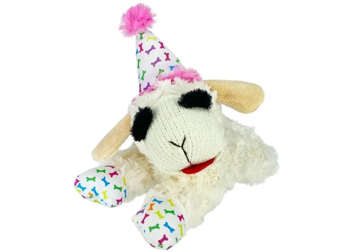 Multipet Dog Lamb Chop With Pink Bday Hat 10.5"